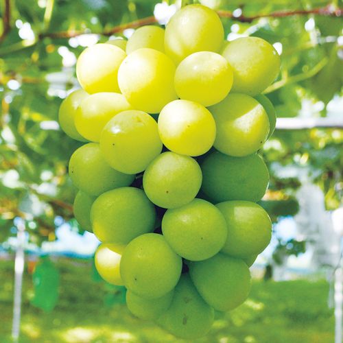 大粒種で、実は皮ごと食べられ、ボリューム感たっぷりで王者の風格がある。「天山」×「シャインマスカット」交雑育成。