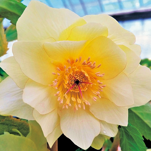濁りのない黄色が美しく、優しい印象の丸弁八重咲き花。秋~翌春は日向で、夏は半日陰で管理する。キンポウゲ科