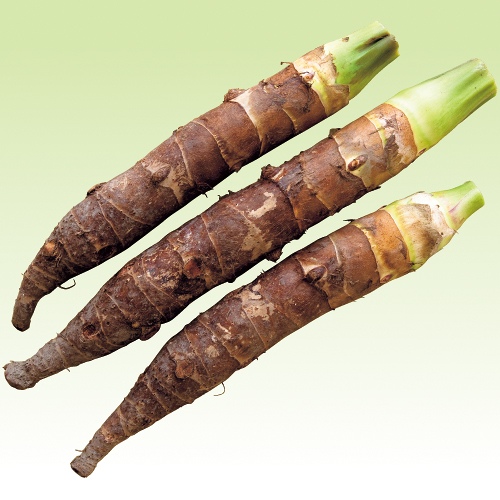 地上部に露出する姿がタケノコに似ることが名の由来。別名「京イモ」。親イモだけが大きくなり食用になる。(1kg:5~15個※)サトイモ科