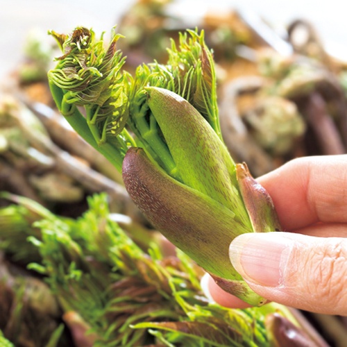 トゲの出にくい女ダラの芽は苦みが少なく歯ごたえよく、もっちりとした食感が魅力の山菜。