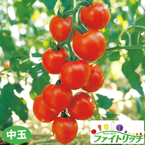 中玉トマトの中でも甘い品種。酸味が少なく食感が滑らかで、糖度以上に甘さを強く感じる。果皮は歯切れがよく口の中に残りにくい。裂果が少なく露地栽培でも作りやすい。葉かび病(Cf9)にも耐病性をもつ。