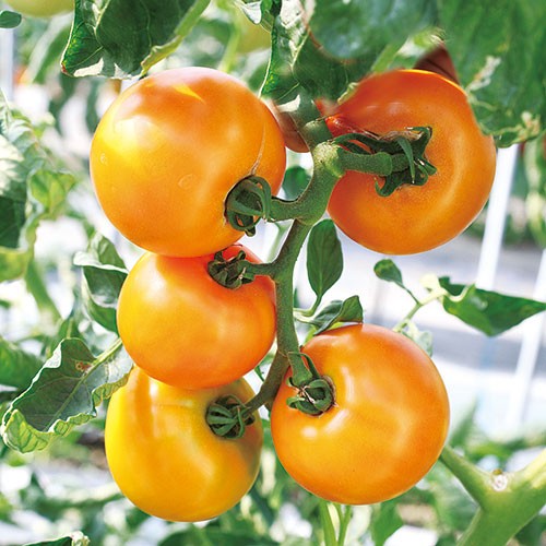 鮮やかなレモンイエローの薄皮ミニトマト。口の中に皮が残りにくく食べやすい。糖度高く適度な酸味があり、食味に優れる。極早生で花数も多く多収。