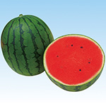 幅広い縞をもつ枕形のユニークな外観。肉質はかためで、歯ざわりのよい食感が楽しめる。糖度は12~13度と高く安定する。日もちがよく、裂果の心配も少なく、着果が安定し作りやすい。