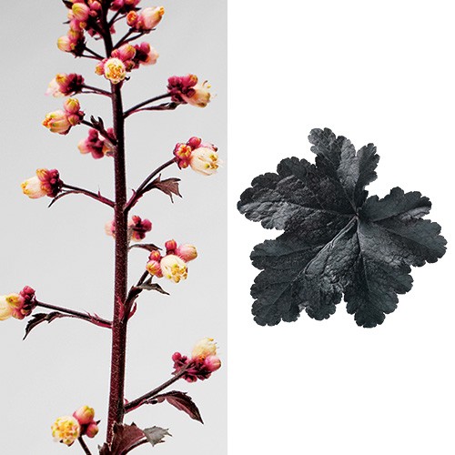 年間を通してシックなブラックリーフが楽しめる。暑さ、直射日光に強い。ユキノシタ科