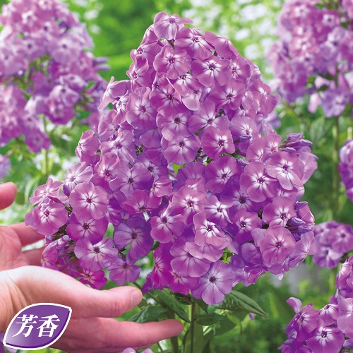 ピンクみを帯びたラベンダー色花で、一般的品種の倍ほどの花房となりインパクトがある。丈夫な茎で切り花にもよく、甘い香りも楽しめる。病気やカビに強く育てやすい。ハナシノブ科