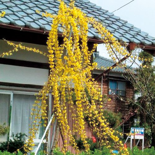 美しい樹形になり、早春に黄色花を枝一面に咲かせる。モクセイ科