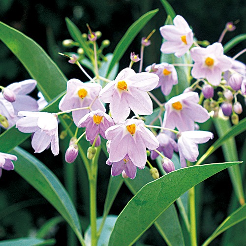 風情ある涼しげな灰青色のヤナギに似た葉と星形花で、切り花にも好まれる。暖地では花後に瑠璃色の実がなる。ナス科