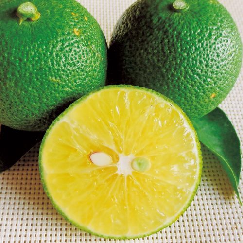 さわやかで酸味まろやかなバランスのよい香酸かんきつ。皮は薄くタネが入りにくいので、果汁は幅広い用途に使用できる。ミカン科