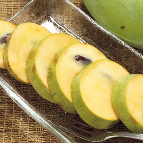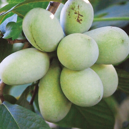 北米原産。バナナとリンゴを合わせたような、独特で濃厚な香りと味で「カスタードアップル」とも呼ばれる。病害虫に強く、青森から九州の広い地域で栽培可能。バンレイシ科