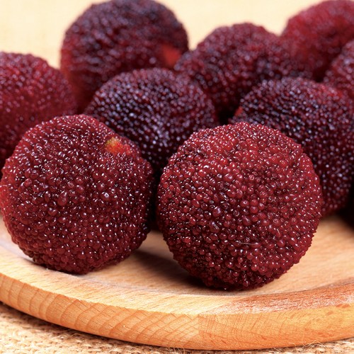 世界的に有名なヤマモモ。果皮は赤皮。肉厚、多汁で食味良好。通常種の収穫が終わった頃の実が黒くなる頃が完熟期。ヤマモモ科