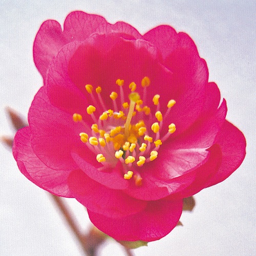 秋~春まで紅梅に似た鮮濃赤色花が楽しめる従来にないサクラ。花つきがよく、冬季も咲き続ける。盆栽にもよく、今回は盆栽風仕立ての苗をお届け。バラ科