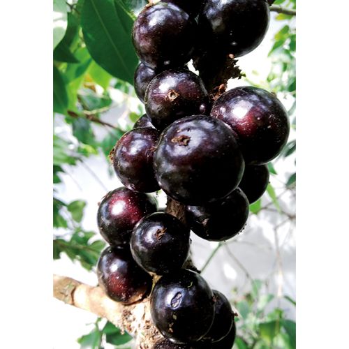 ブドウ「巨峰」に色と味が似た球形果が幹に直接なる。大実の豊産性四季なり種で、株が充実すると花後約40日で収穫できる。フトモモ科