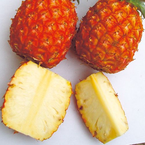 乳白色の果肉は酸味が少なく糖度高く、とてもおいしい。モモのような香りがすることから「ピーチパイン」とも呼ばれている。パイナップル科