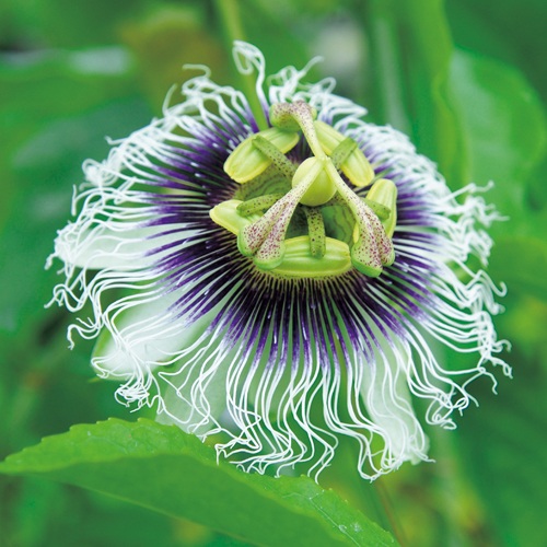パッションフルーツとしておなじみのトケイソウの仲間。葉が大きく、トケイソウの中では特にグリーンカーテンに向く。うまくすればおいしいフルーツも楽しめる。果皮が紫色になるものと黄色になるものがある、紫色の品種の方が一般的で自家結実性も高いのでおすすめ。効率よく、確実に実をつけるには人工受粉が必要。トケイソウ科