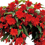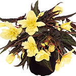 強健なボリビエンシスの性質を引き継ぐハイブリッドシリーズで、一般的な球根ベゴニアに比べ暑さや根腐れ病に強いのが特長。今回は中でも華やかな八重咲き品種をご紹介。花色と葉色のコントラストも目を引く。分枝性に優れ花数が多く、ハンギングやプランターで手軽に楽しめる。