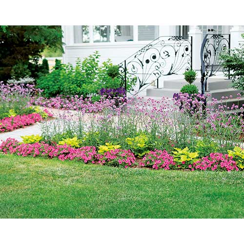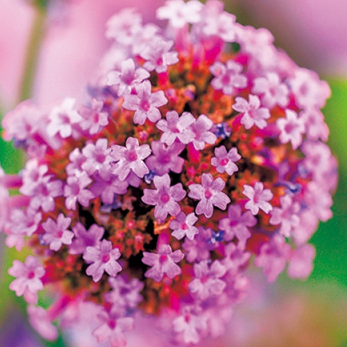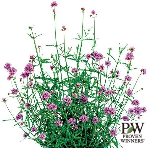 分枝性に優れ、たくさんの枝に花がつく。暑さに強く、春から晩秋まで連続開花。花数が多く充実した大きな花房。種がつかず、庭で勝手に繁殖しない。花壇や寄せ植えのフォーカルポイントに。栽培が簡単でローメンテナンス。花房約2.5cm。藤色花。クマツヅラ科