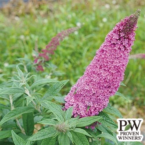 従来の矮性ブッドレアよりふっくらボリュームのある大きな花穂。桃色花。小さな庭や鉢植えで楽しみやすいコンパクトでまとまりやすい樹形。初夏から霜が降りる頃まで繰り返し咲き、長く花を楽しめる。フジウツギ科