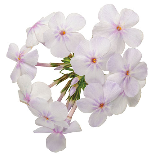 生育旺盛なハイブリッド宿根フロックス。白地に中心淡桃色花。花径約3.5cm。分枝性に優れ、たくさんの花が楽しめる。うどんこ病に強く、耐暑性が非常に高い。連続開花に優れ晩秋まで咲き続ける。ハナシノブ科