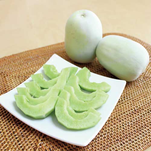 完熟すると強い芳香を放つサクサク食感の甘い小型メロン。果重は150~200g。