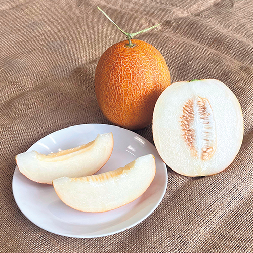 果皮は濃い橙色でバナナのような芳醇な香り。緻密な甘い果肉でしっとりとした食感。生育旺盛で露地でも栽培しやすい!着果性も高く、ビギナーでも安心!