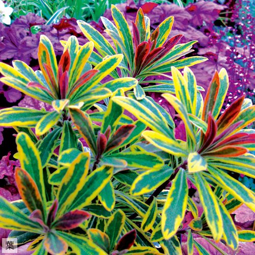 個性的な花を草姿が魅力の宿根草。花のない季節もカラーリーフとしても楽しめる。トウダイグサ科