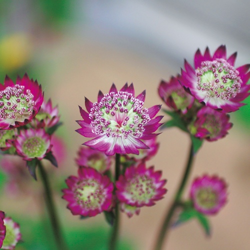 とても細やかで繊細な花がたくさん咲く。小さめですが、ルビーレッドで真ん中が白っぽく、丸みを帯びた花で、見れば見るほど美しい。イングリッシュガーデンで不動の人気を誇る宿根草で、繊細な花容と花色が魅力。日本では切り花としてよく利用される。暑さを嫌うので夏は涼しい場所で管理する。セリ科