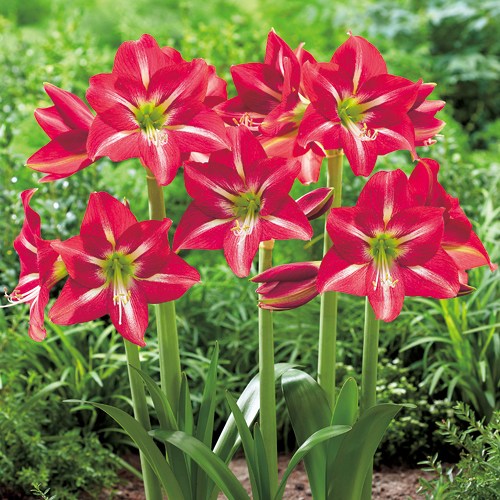 ローズに白のストライプが美しい。通称「アマリリス」。春と秋は生育旺盛なので水をよくやり、真夏と真冬は半休眠するので水を控えるのがポイント。ヒガンバナ科