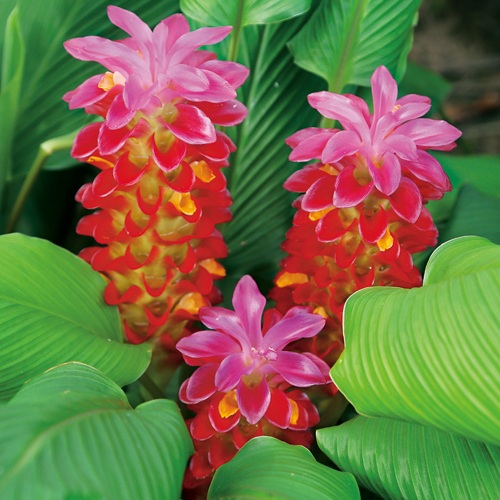 花茎約20cmの大型種で、独特な発色をするファイヤーレッド色が美しい。熱帯アジア・インド・アフリカなどに分布。水もちよく切り花に重宝する。ショウガ科
