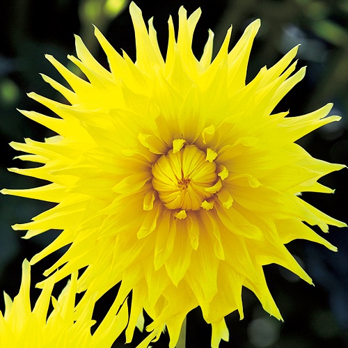 鮮黄色のセミカクタス咲きでシャープな花容。キク科