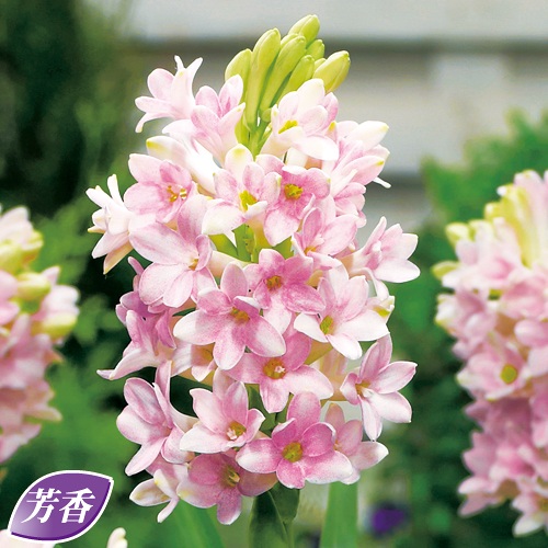 待望のカラー品種で桃色の一重咲き花。従来種よりやや小さめだが香りがよく、切り花に向く。リュウゼツラン科