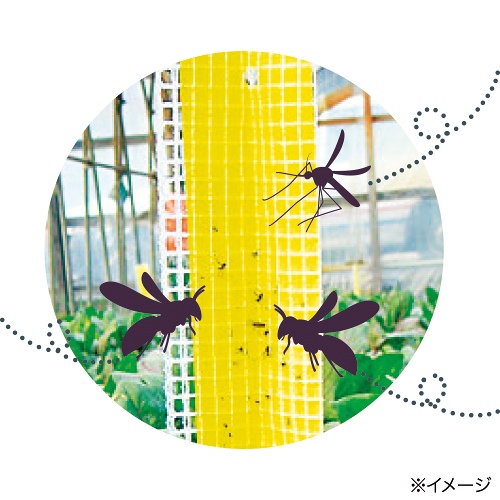 両面ネット付きで、手や衣服、茎や葉にべとつかないので作物の近くに設置可能。耐久性に優れ屋外でも約3カ月使用でき、雨水に濡れても捕虫効果は変わりにくいです。(日本製)