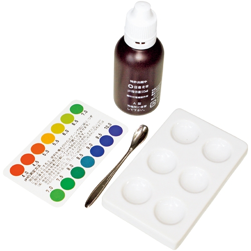 数種類の色素を特殊な方法で調合したpH指示薬を使うことで、高い精度でpHの測定ができます。色の変化が鮮やかで時間が経っても変化しません。測定方法は土に直接指示液をかけるだけと簡単。(日本製)