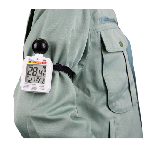 熱中症の危険度の目安となる暑さ指数(WBGT値)を測定し、アラームと警戒ランプ、液晶画面の警告表示で熱中症注意レベルを知らせます。測定環境に応じて(屋内・屋外)切り替えができます。(中国製)