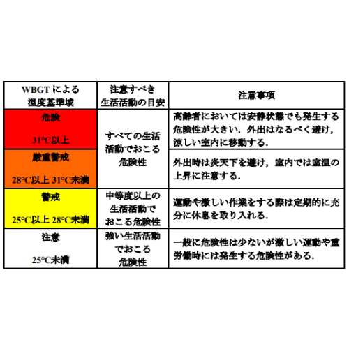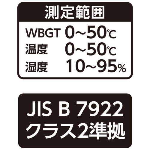 測定間隔:20秒、熱中症注意表示:4段階、警告ランプ:2段階
