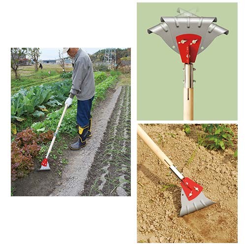 絶妙な刃幅と軽さで長時間におそぶ畝立ての疲れを軽減します。刃先の角度を変えることで、手首のひねりなしで土よせがはかどり、腰や手首に負担をかけない優れものです!(日本製)