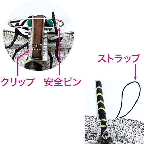材質:[安全ピン]ニッケルメッキ、[クリップ]ニッケルメッキ+PS、[ひも]ナイロン、[はね]PVC、[本体]PVC