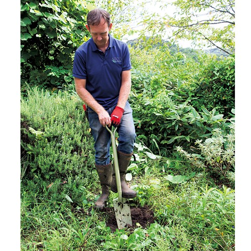幅が細く長いので、深い穴や溝を掘るのに便利。いろいろな植物をすでに植えている庭で、ピンポイントで掘れるのが他の株を傷つけずに済むのでよい。面が小さいので石に当たったのが分かり、取り除くこともできる。