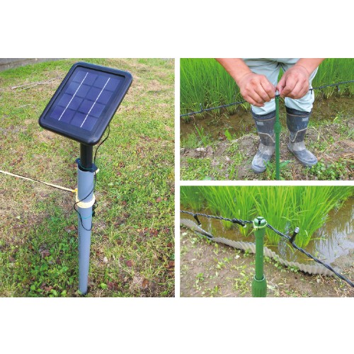 夜間行動するイノシシからの被害を防ぐ撃退装置です(特許取得済)。イノシシは青色系の色を識別できることから、このLED電球のブルーの光に驚いたイノシシが近寄りにくくなります。照度センサーで、夜間自動点灯・日中自動消灯します。ランダム点灯で慣れを防ぎます。(中国製)