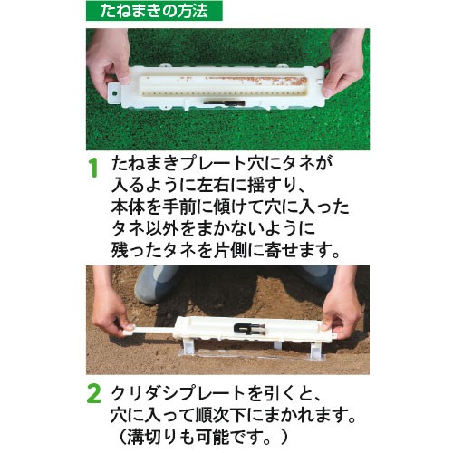 ※苗作りプラグトレーなどには播種できません。(畑や苗箱などの土の上での使用になります。)