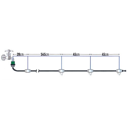 ■セット内容:蛇口ニップル1個、エンドキャップ1個、ミストノズル3個、チューブ(5m45cm)1本、チューブコネクタ1個、ケーブルクリップ5個、ケーブルタイ5本、継ぎ手1個