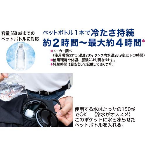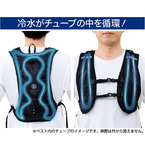 ベスト内部に巡らされたチューブの中を冷水が循環し、体を冷やす画期的なウェア。背面のポケットに凍らせたペットボトルを入れて水を冷やし、内蔵ポンプが水を循環させ、音がほぼ無いのも嬉しい。コンパクト設計で装着しても動きやすく、上に作業着などを着ることも可能。水がぬるくなってきたら別の凍らせたペットボトルに交換するだけ。(中国製)