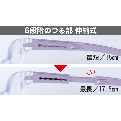 裸眼、コンタクトレンズ、遠近両用メガネの上からも掛けられるので便利です。丈夫なポリカーボネート製。傷がつきにくいハードコートレンズ。(日本製)