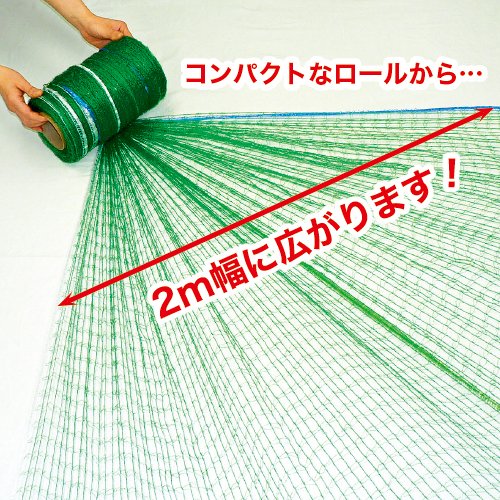 コンパクトで軽いので一人でも楽にネット張りができ、もつれにくいので繰り返し使用可能。幅が約8倍に広がり、保管時はコンパクトになり便利。ネットの左右を色分けしているので、ねじれても簡単に直せます。家庭菜園向け。やわらかくて絡まない!片付けもラクラク!(日本製)