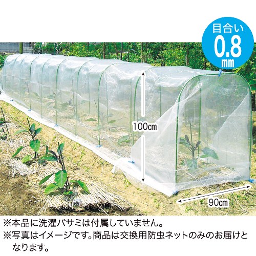 春から晩秋にかけて防虫ネットはとても有効で、雨や風で作物が傷つくのを軽減する効果もあります。作物に害虫がつく前に張るのがポイントです。最近では、害虫の体長に合わせて0.25~1mmくらいまでさまざまな目合いのものや、あらかじめ支柱がネットに固定されて設置が簡単なもの、アルミ蒸着糸を編み込んだり赤色糸を使ったりして防虫効果を高めたものなどがあります。