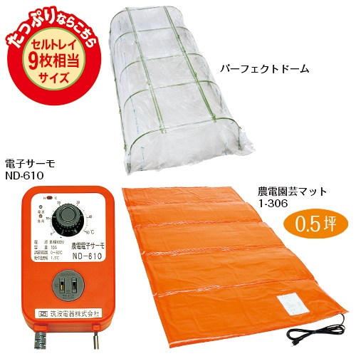 農電園芸マット1-306・1枚+電子サーモND-610・1台+パーフェクトドーム・1台