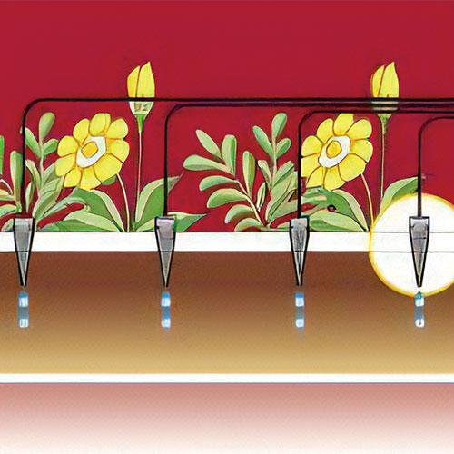 電源不要!シンプルで使いやすい散水タイマーと点滴チューブのセットです。鉢・プランターの土に差し込んで、散水簡易タイマーを回してタイマーを設定すると、根元に点滴の水やりが10カ所同時にできます。(中国製)