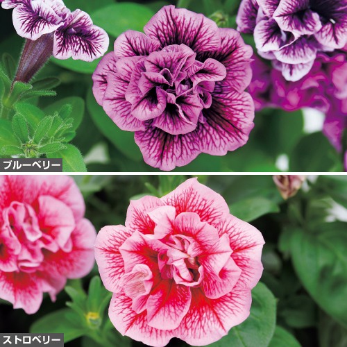 花壇やコンテナ、ハンギングなど幅広く楽しめる。寄せ植えで映える色合いの八重咲き種。ナス科
