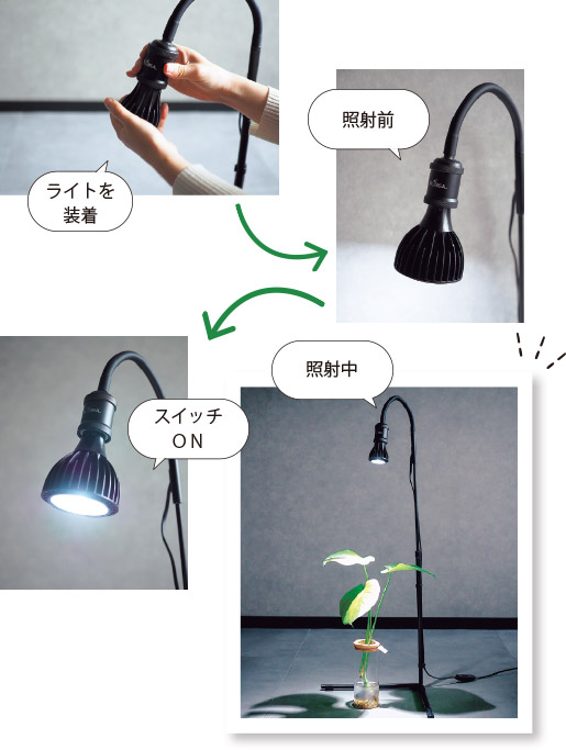 - ●梅雨や冬の時期に日照不足や気温の低下により植物を室内に取り込んだ際も、太陽光の代わりとなる光を補うことができるため、植物の順調な育成が可能です。