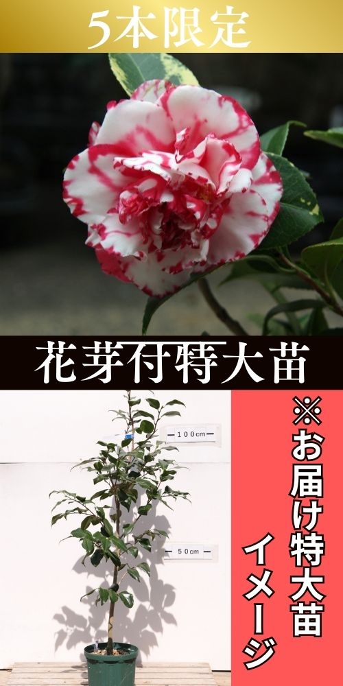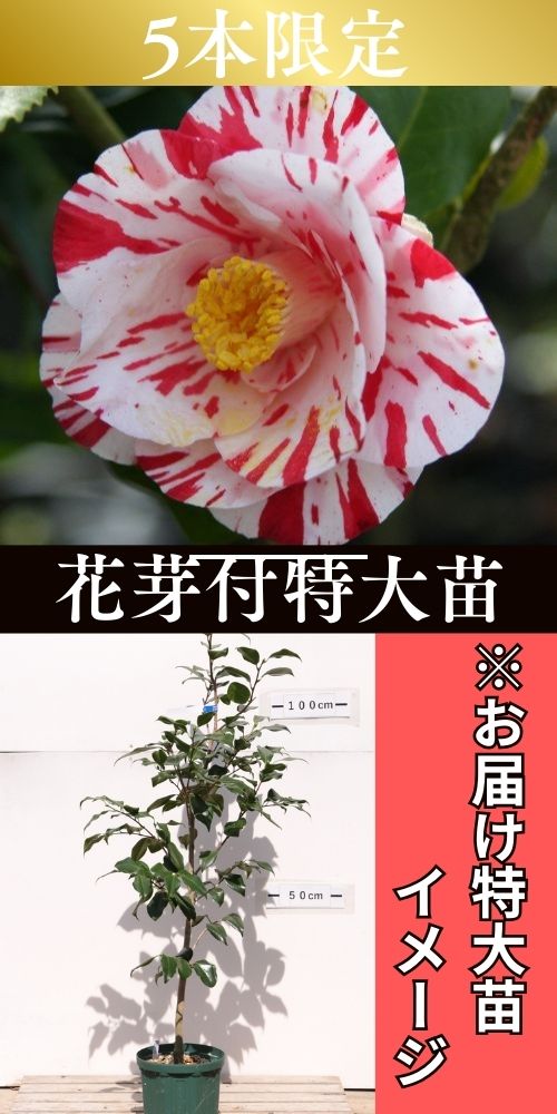 傘状に広がる美しい花形が魅力で、白地を基調とした鮮やかな絞り色が人気。成長して枝数が増えると絞の多い枝や時に紅の単色花が咲く咲き分け性質も持ち合わせています 。