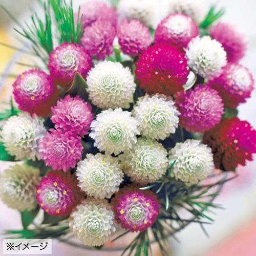 ピンクとパープルレッドが1995年に新発表。茎の硬さ、直立性、花のまとまりのよさなど、切り花・ドライフラワーで大いに使用されている。多色ミックスがフェアリーミックスとして販売中。